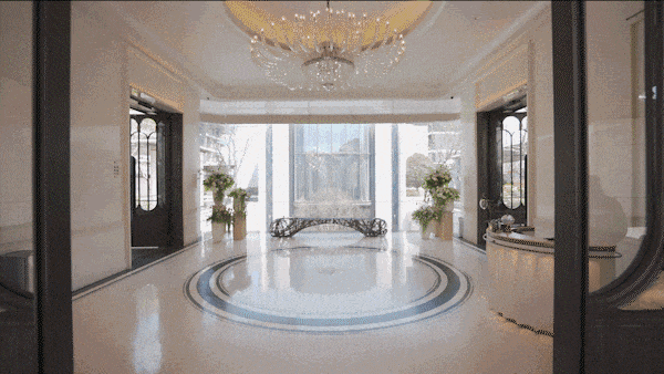!井蛙之见:好比,定制铸铝门、专属奢石把手,进门后玄关地面设想了专属石材拼花,并定制通体玄关柜!